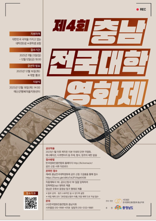- 이전글2025 제4회 충남전국대학영화제 심사 결과 안내 25.12.16